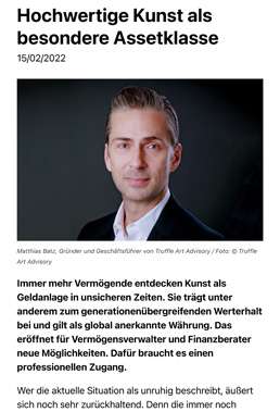 TRUFFLE ART ADVISORY IM INTERVIEW MIT DEM LIFE IN MAGAZIN